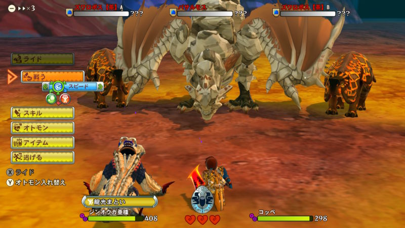オトモンは卵から生まれた子供だからなのか、敵として出てくるモンスターよりサイズが小さいです。